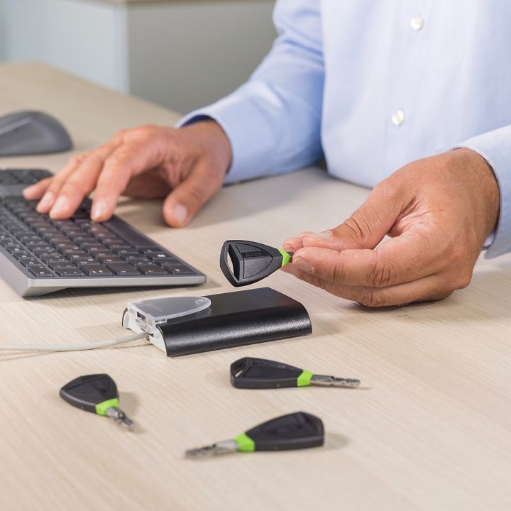 The ABLOY PULSE Desktop Reader allows contactless key, tag and card programming for the complete PULSE solution. The reader is connected using USB to PC/laptop and ASSA ABLOY Access® management software.