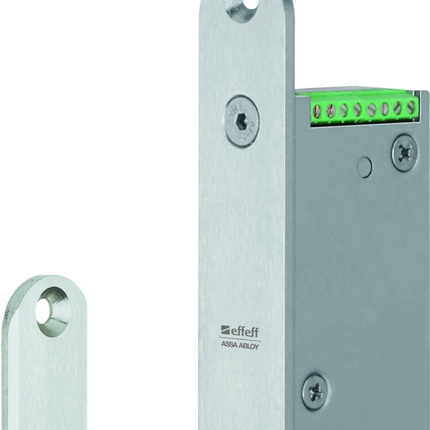 The electronic swing door strike 351M.80 is equipped with an innovative quiet electric motor drive and is designed for the locking of swing, double swing, and carousel doors. It is suitable for horizontal or vertical installation in the door frame.
