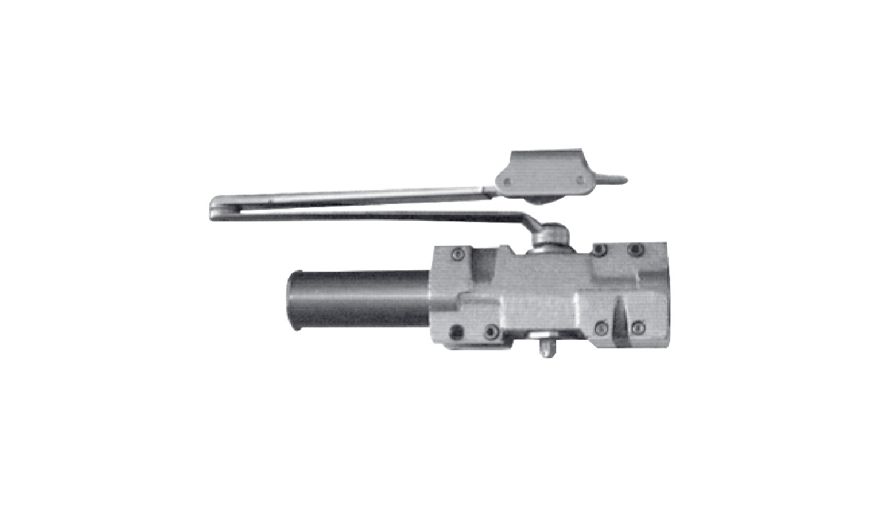 Closer mounted on door. Bracket on frame soffit.