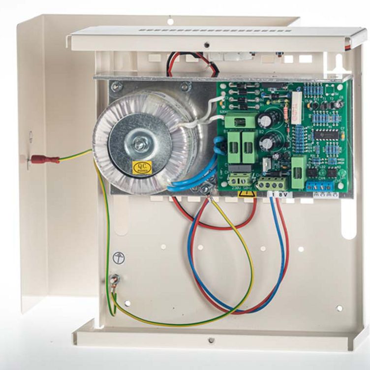 Stabilizované napájecí zdroje PWS-12-20 jsou koncipovány pro bezpečnostní systémy, vyžadující stabilní stejnosměrné napětí 12VDC. Tyto lineární zdroje s bezpečným toroidním oddělovacím transformátorem poskytují jmenovité výstupní zatížení 2A, což zahrnuje proud dostupný pro připojené elektrické spotřebiče a baterii. V případě výpadku napájení automaticky přechází do režimu na baterie, což udržuje nepřerušený chod celého bezpečnostního systému.