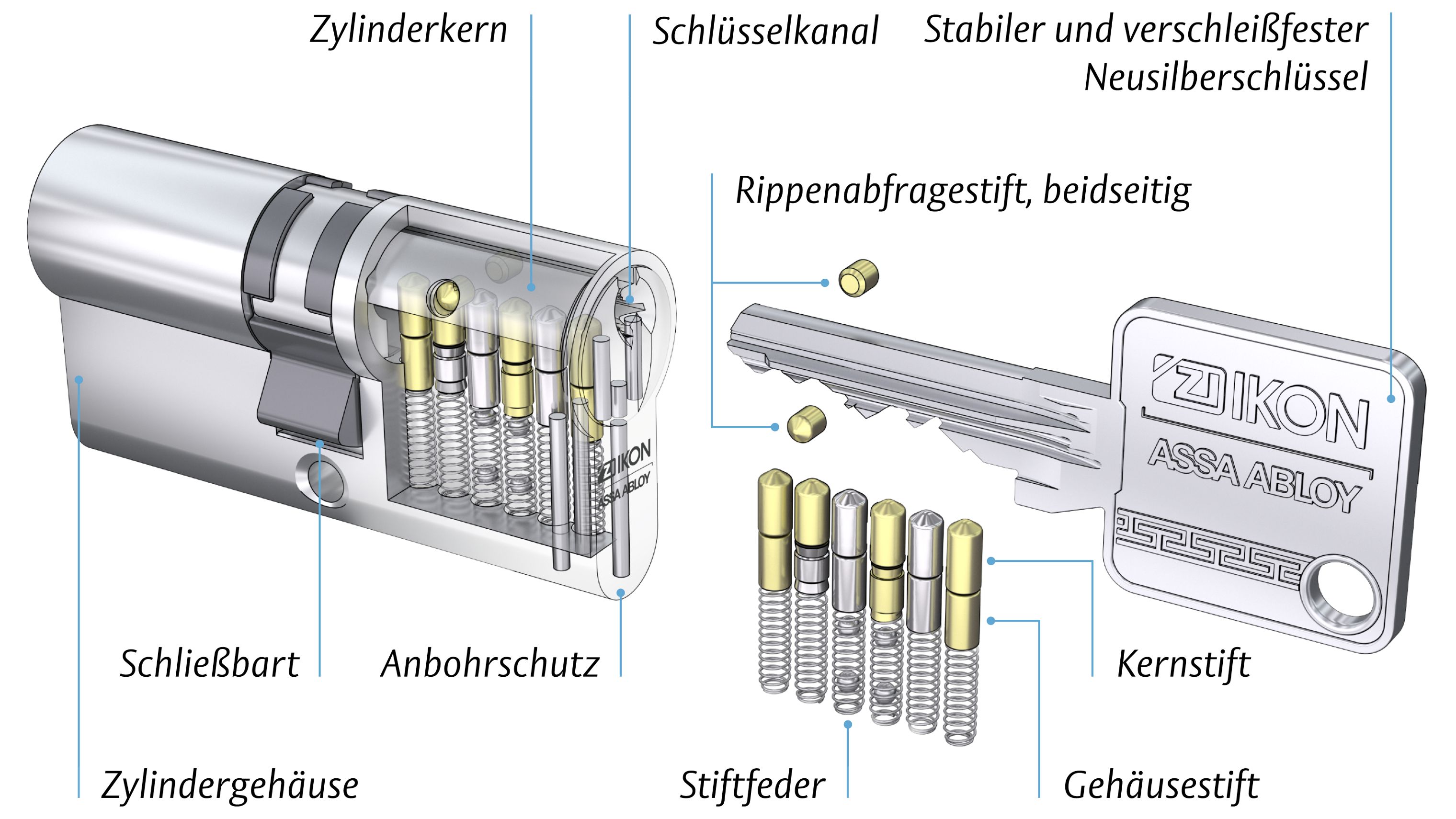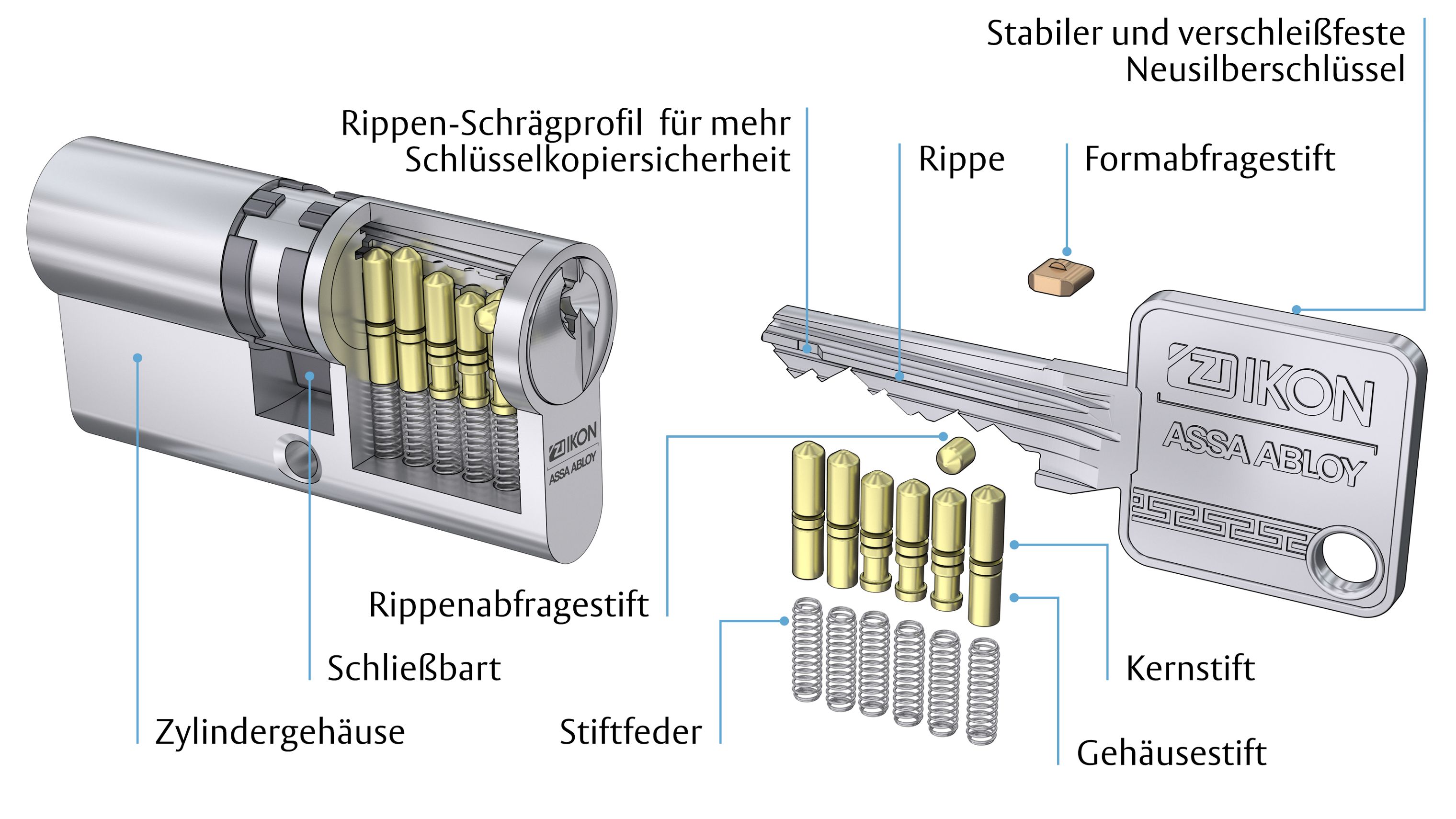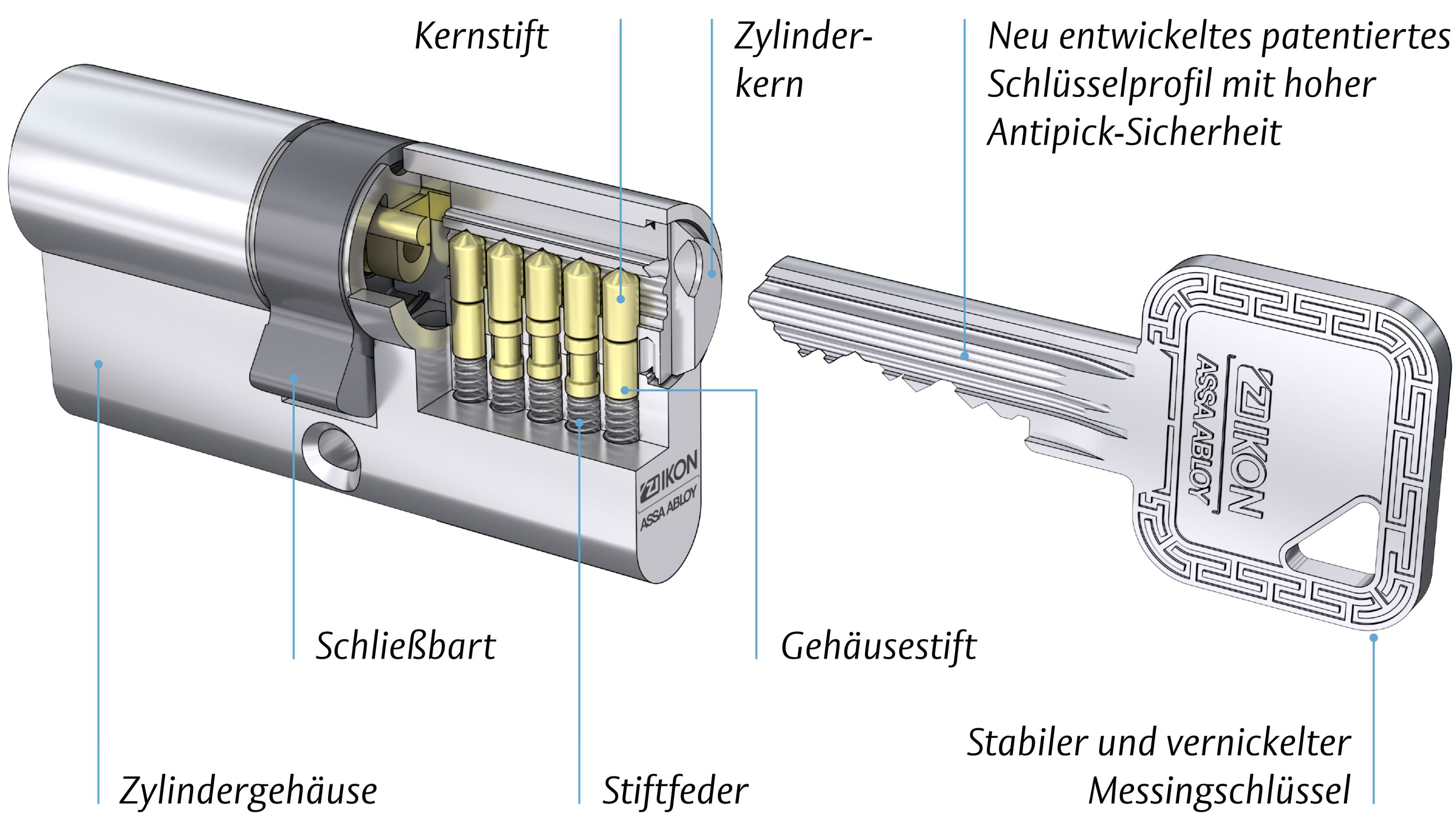Das Radienprofil Plus basiert auf einem hochwertigen Rohling mit sechs aktiv wirkenden, gefederten Stiftzuhaltungen.