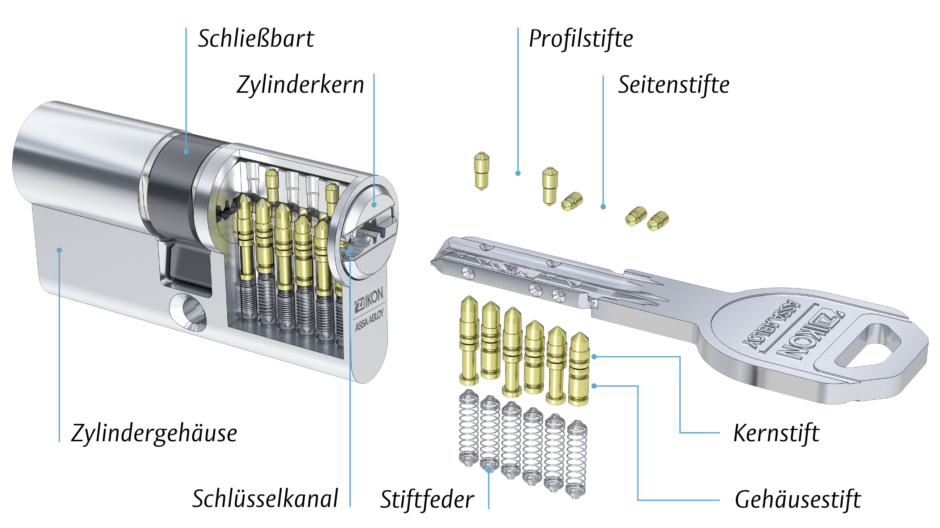 Das umfangreiche Typenprogramm an hochwertigen Schließzylindern deckt nahezu alle Einsatzbereiche ab.