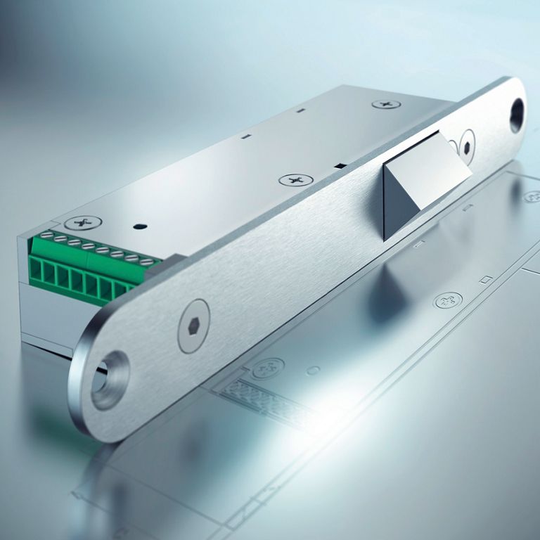 The door leaf is detected by a contactless sensor. When the door is open, the bolt is completely sunk into the frame, creating a smooth surface and allowing a swing door, for example, to slide past the frame completely unhindered. After closing the door, the magnetic sensor detects when the correct rest position for locking has been reached.