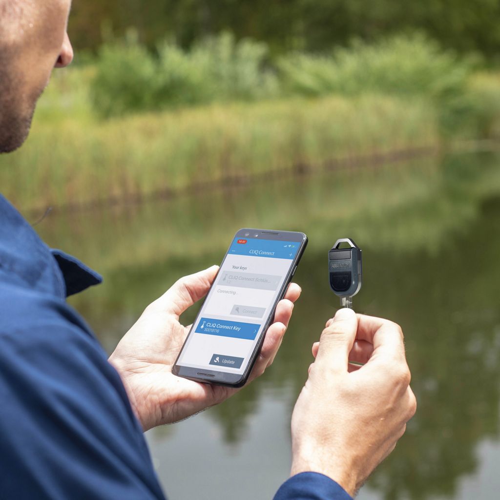Med CLIQ Connect nøglen, møder vi samfundets krav om at kunne arbejde mere fleksibelt og mobilt således, at du kan opdatere adgangsrettigheder på farten via mobilen.