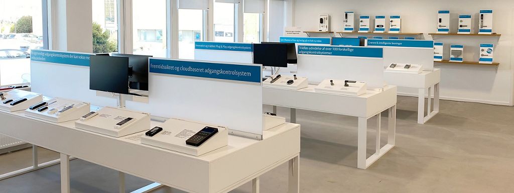 På hovedkontoret i Ballerup har vi indrettet et showroom, hvor vi kan vise dig vores produkter og løsninger. Både elektroniske og de mekaniske.