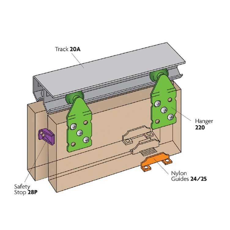 - Silent - nylon wheeled bearing hangers and aluminium track