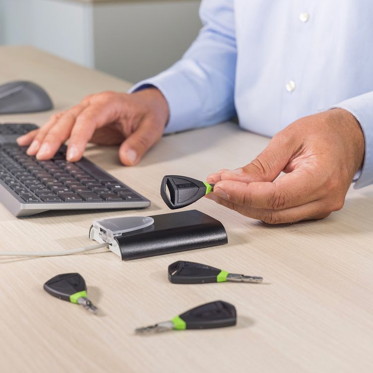 The ABLOY PULSE Desktop Reader allows contactless key, tag and card programming for the complete PULSE solution. The reader is connected using USB to PC/laptop and ASSA ABLOY Access® management software.