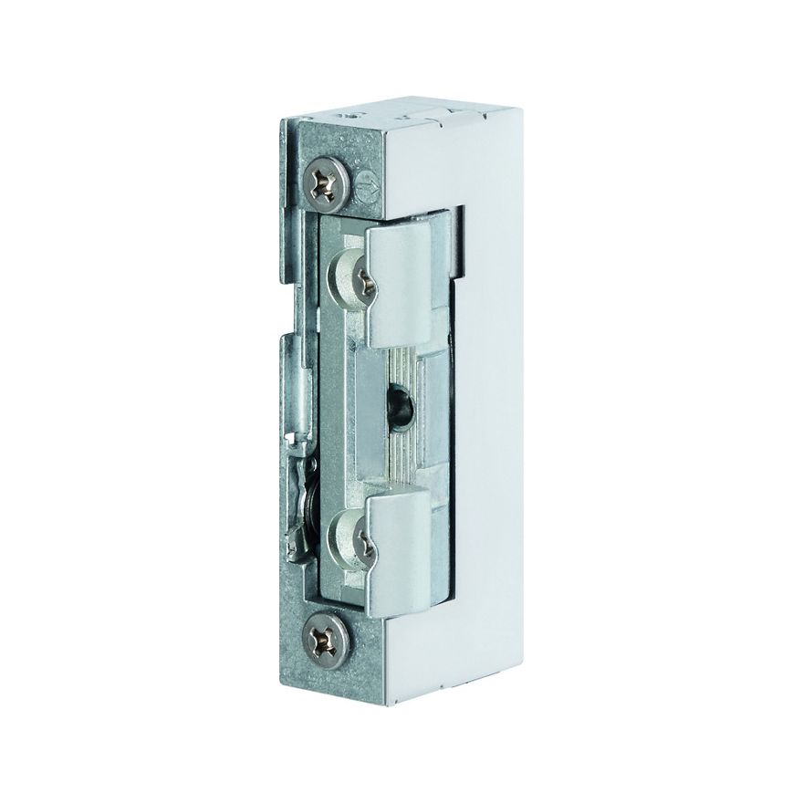 Model with mechanical unlocking. Suitable for use with roller keep locks or latch slides. This model also features screw holes which are offset 1 mm towards opening side.