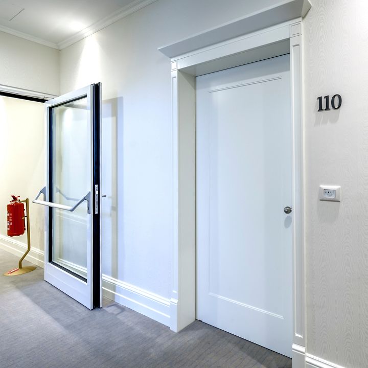 U prostoru sa zahtjevanim interijerskim uređenjem, predlažemo oplemenjena protupožarna vrata sa dekorativnom oblogom (furnir, PVC obloga...) koja se skladno uklapaju u cijeli interijerski prostor.