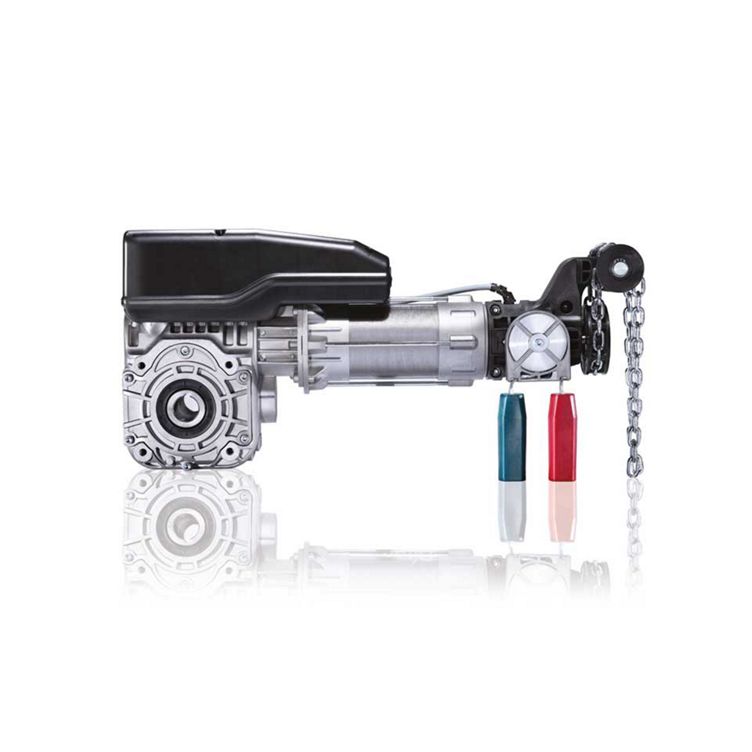 - Motors with pre-cabled hand chain: during the manual operation, the irreversible self-braking gear remains always inter-connected to the door. If a spring breaks, there will be no danger for a fall down