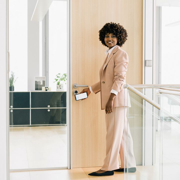 ניתן לנטר ולסנן את הגישה דרך דלתות אבטחה באמצעות מנעול אבטחה Aperio L100 וקורא RFID משולב.