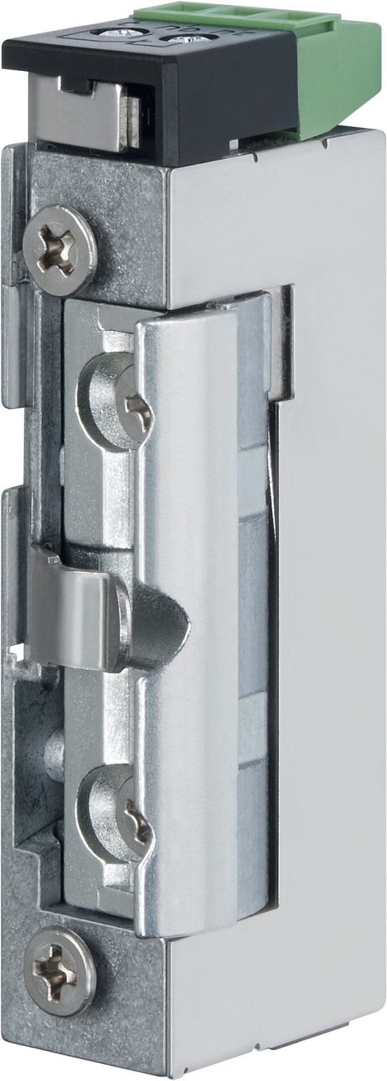 מנגנון נעילה אוניברסלי זעיר N.O (פתוח בכשל) עובד על עיקרון תפס לשונית מסוג רדיוס.