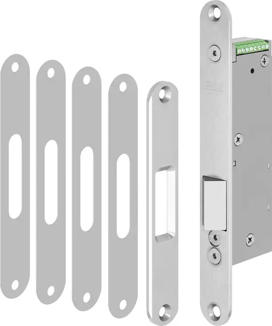 Version with strike plate, counterpart and spacer plates