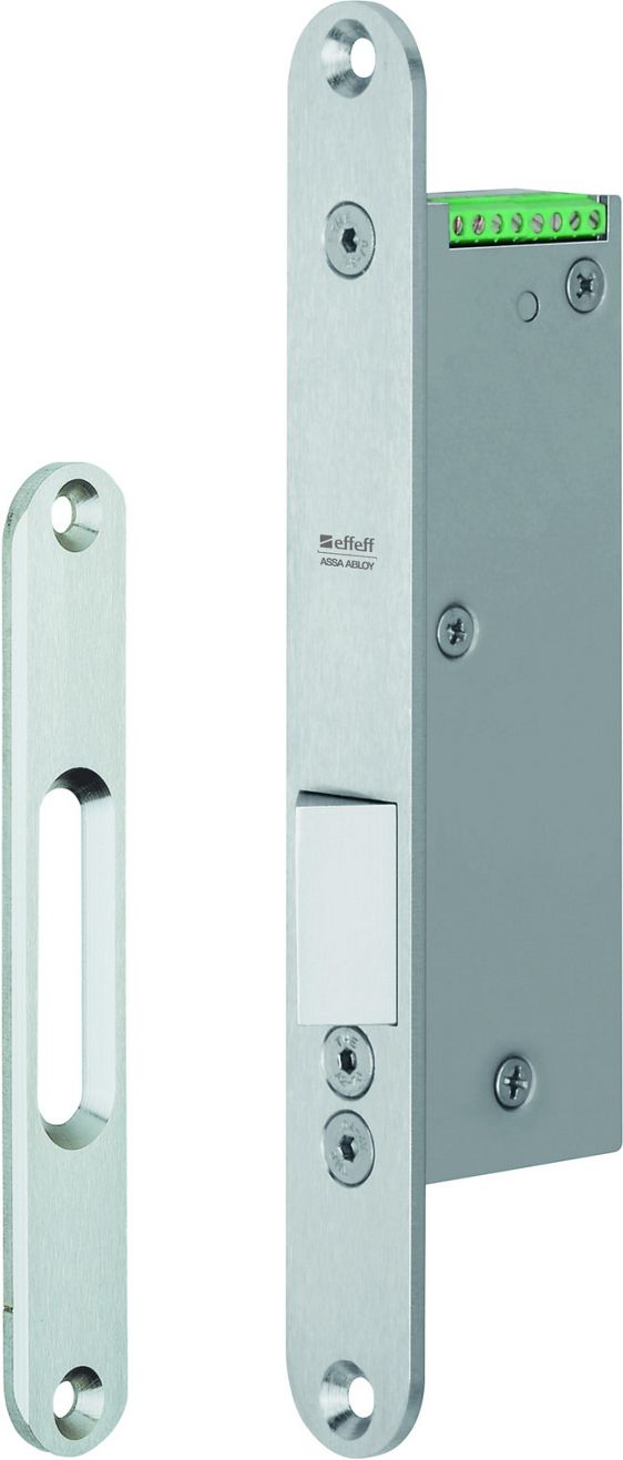 The electronic swing door strike 351M.80 is equipped with an innovative quiet electric motor drive and is designed for the locking of swing, double swing, and carousel doors. It is suitable for horizontal or vertical installation in the door frame.