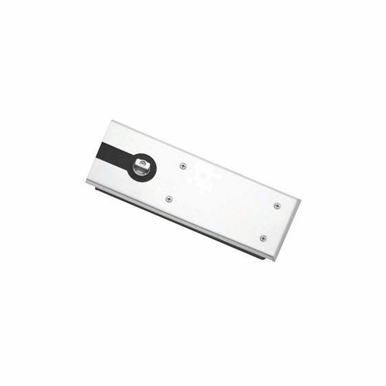 ASSA ABLOY AF-224P floor spring with slim profile installed in floor beneath glass door