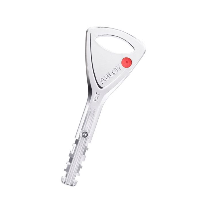 The ABLOY PROTEC² dimple key has a symmetrical design and is designed to work with rotating disc cylinders.