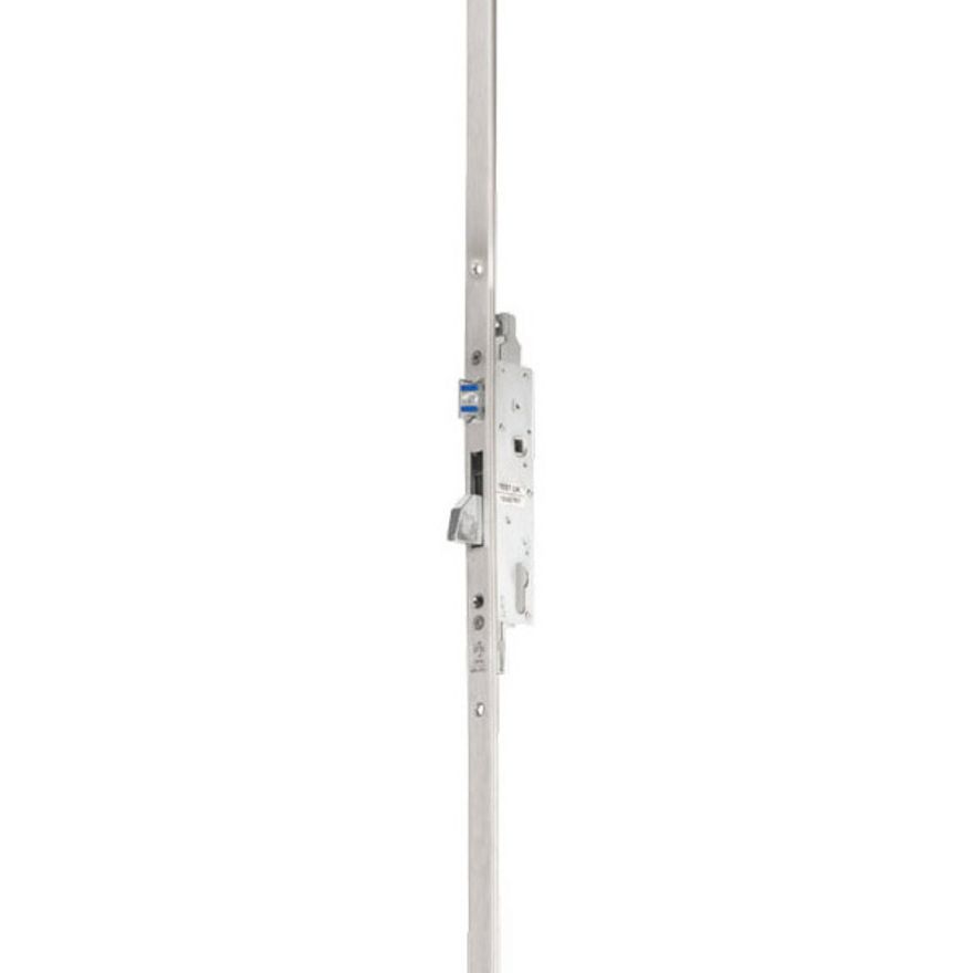 D83 narrow stile mortise locks have a cylinder locking mechanism (compatible with Euro-profile or cross key cylinders) with 3 locking points (center, bottom and top) connected by a single front. They are designed for mortise installation on aluminium doors.
