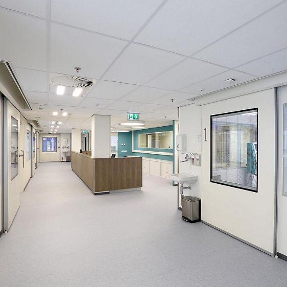 Troppe barelle e sedie a rotelle in movimento spesso causano ingorghi nei corridoi degli ospedali. Fortunatamente, la porta scorrevole ASSA ABLOY SL Hygienic Metaficient è qui per aiutarti. Si tratta di una soluzione sicura, igienica e facile da usare.