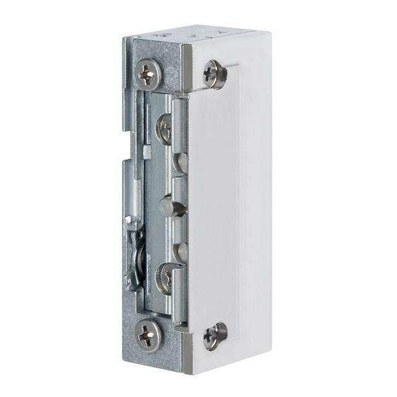 È progettato per porte a battente senza particolari requisiti antieffrazione. La porta si sblocca quando viene rilasciato l'impulso elettrico e, con l'azione dell'antiripetitore, rimane sbloccata fino a che non viene aperta. L'antiripetitore si presenta come un elemento mobile (perno) posizionato sul ricevi scrocco.