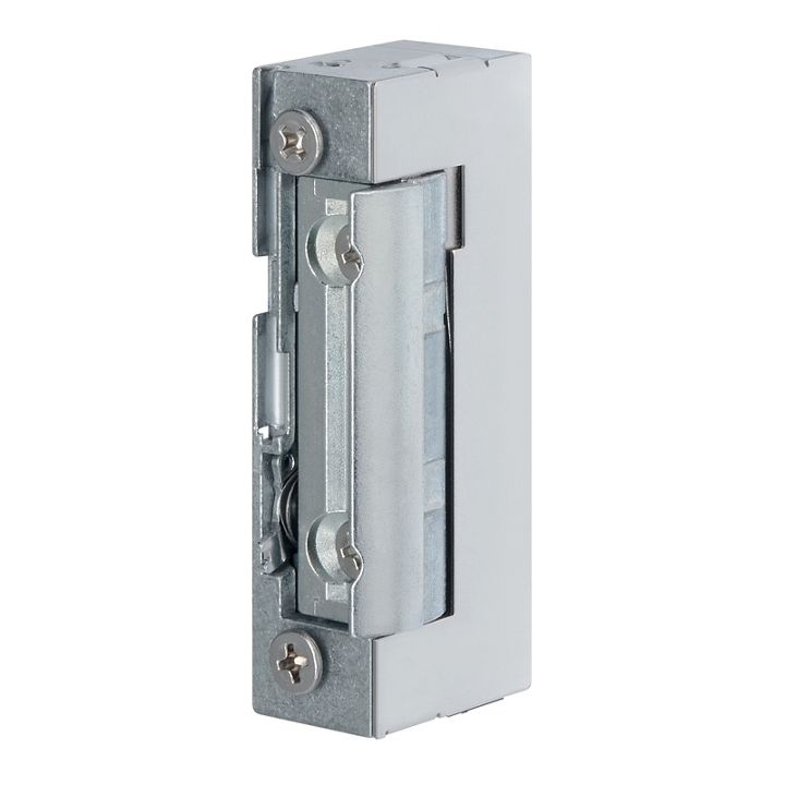 Il modello 148E è un incontro elettrico a ingombro ridotto dal design minimale dotato di fermo a giorno meccanico, progettato per porte a battente senza particolari requisiti antieffrazione.