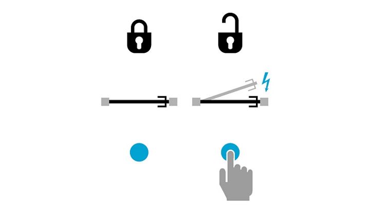 La porta è bloccata se non viene inviato l'impulso elettrico e l’apertura è possibile solo nel momento in cui l'impulso viene inviato.