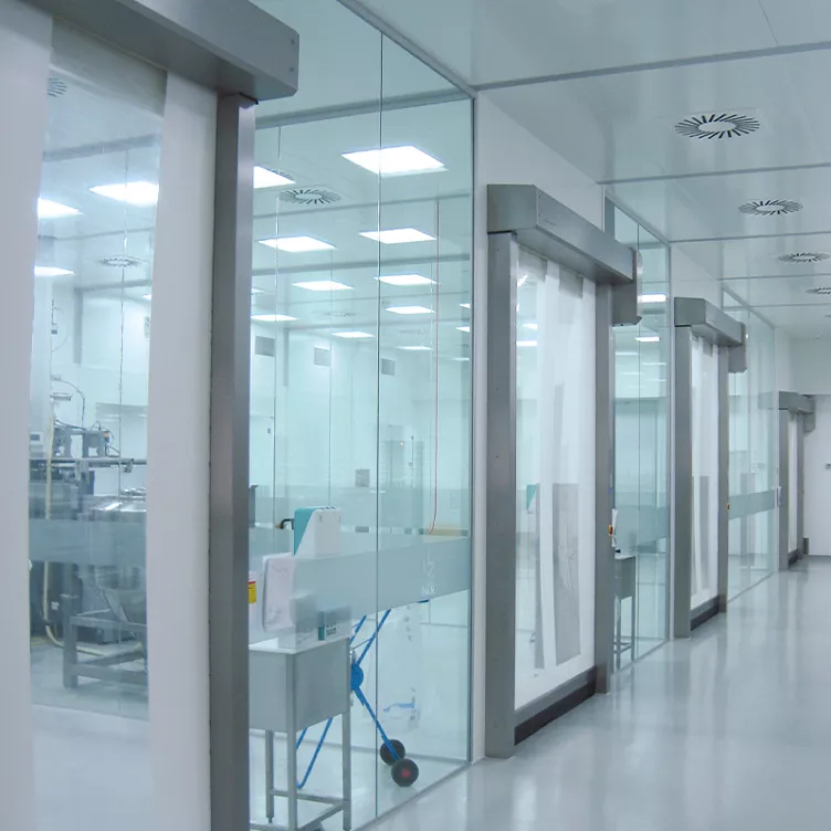 Cleanroom high speed doors feature an almost airtight seal, which minimizes pressure drop and protects your environment against drafts, humidity, dust and dirt. The airtight doors comply with international cleanroom standards and are certified the Fraunhofer Institute.