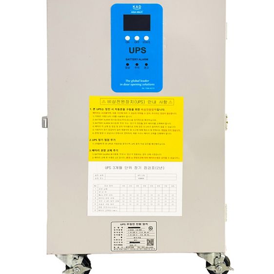 KAD-ASSA ABLOY의 KPS-1600 UPS는 산업용자동문(스피드도어, 오버헤드도어, 전동셔터 등) 전용으로 개발되었습니다. KPS-1600은 "전원이 끊겨도 문은 반드시 열린다!"는 산업용자동문 기본 안전 개념에 충실한 제품입니다. 산업용자동문 전용 UPS는 무정전 전원 공급장치로 정전 및 화재 상황 등 비상시에 도어를 자동으로 개방하여 안전하게 탈출할 수 있도록 어떤 상황에서도 문이 열릴 수 있게 해줍니다!
