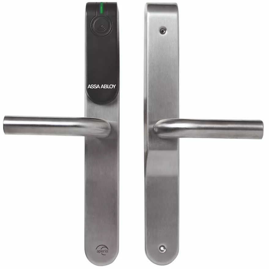 It can work with an online system or as an offline escutcheon. This is decided during the product initialisation. When connected online, communication is via the communication hubs to the online access control system, where access decisions are made. Additional advantages of Aperio Online management include real-time control over doors and the instant availability of audit trails for any lock or site user.
