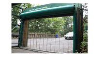 Rejilla de enrollado ascendente ofrece una selección de materiales de cortina para satisfacer los requisitos estéticos y funcionales de casi cualquier entorno. Esta parrilla de seguridad está fabricada en acero galvanizado. El acero inoxidable y las planchas antifuego del policarbonato son también opciones. El patrón de la cortina estándar para esta rejilla de seguridad es una configuración de rejilla recta, pero puede optar por un diseño de ladrillo escalonado.
