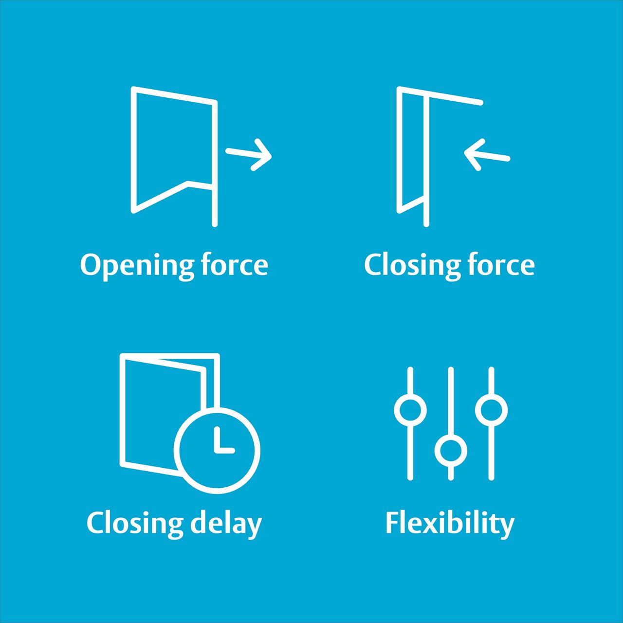 - Openingskracht: voor een barrièrevrije toegankelijkheid moet de kracht die nodig is om de deur te openen zo laag mogelijk zijn