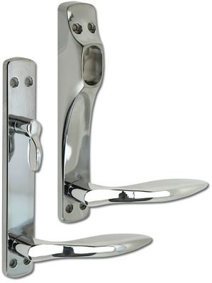 Skiltenes vrider har returfjær og er vendbare for å passe til dører med både høyre- og venstre slagretning. Leveres med overflate blank krom og matt krom.