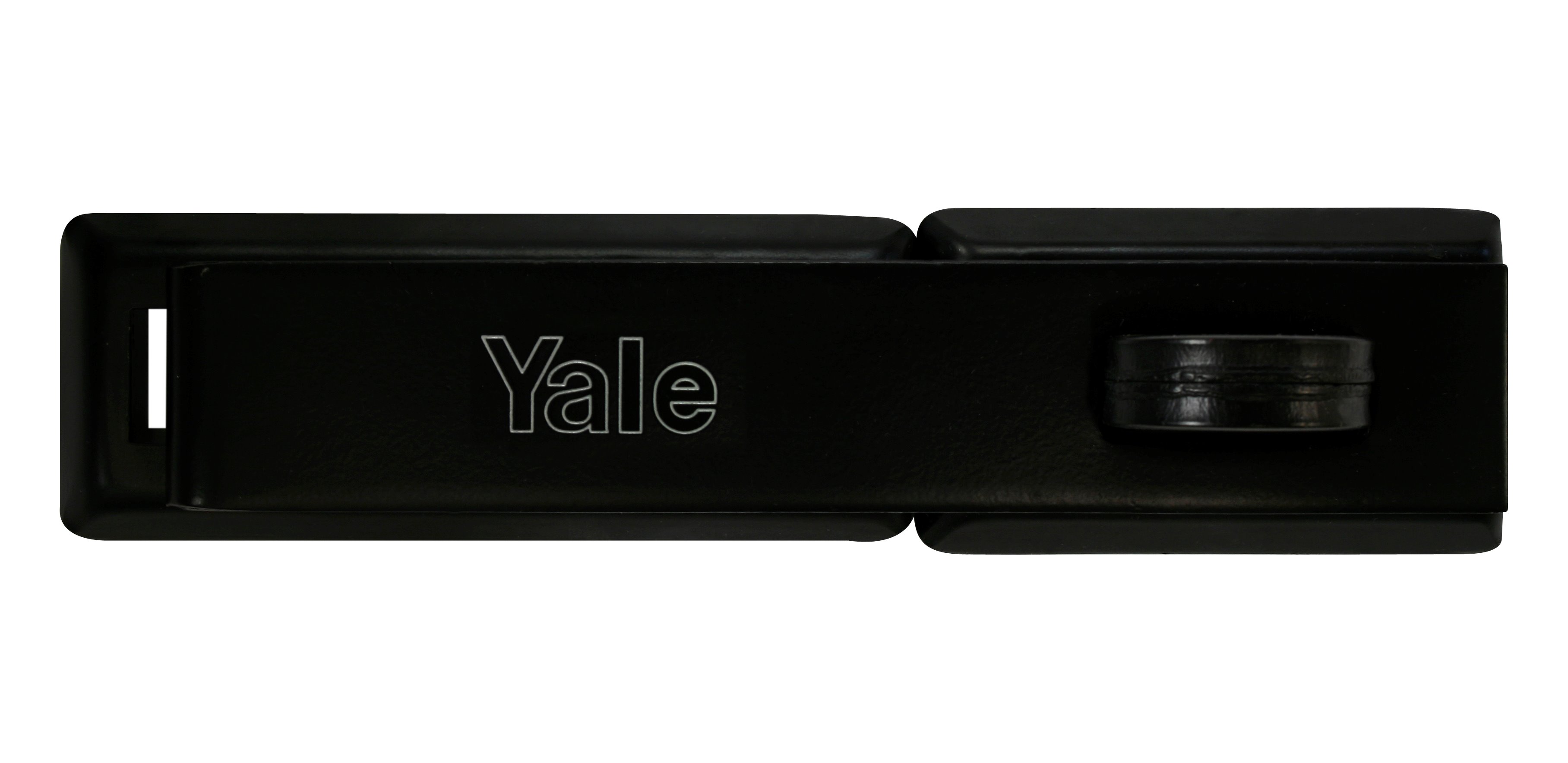 Hengelåshaspe i herdet, sortlakkert stål, med god korrosjonsbestandighet for avlåsing av generell karakter f.eks. boder, porter og andre utvendige dører. Med god beskyttelse mot saging og kapping.