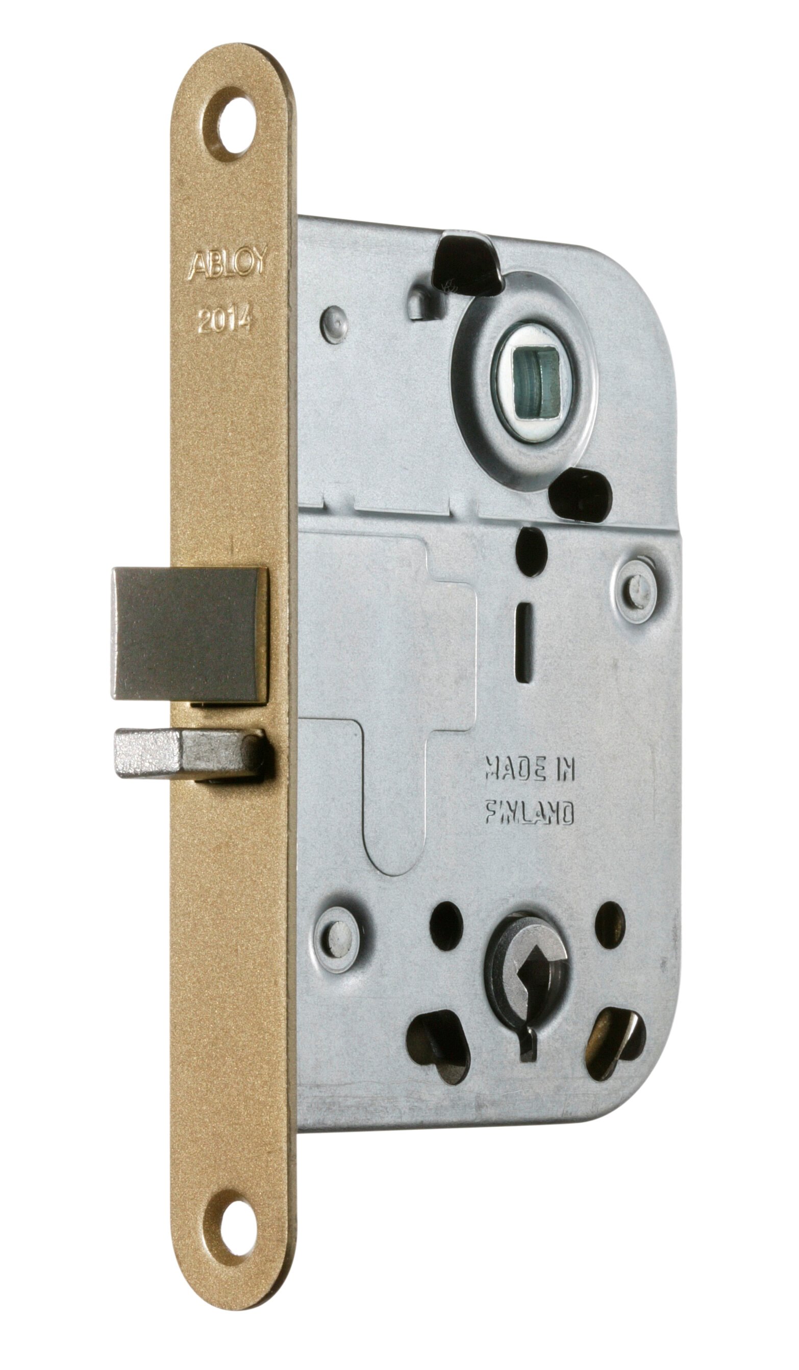 Beregnet for innerdører. Kan låses med enten nøkkel eller knappvrider på et toalettskilt (signalskilt).
