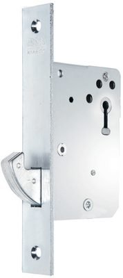 Innstukken låskasse som krever spesielt uttak i dør. Den lille kassedybden gjør det mulig å montere låsen selv i smale aluminiumsprofiler. Monteringsanvisning følger med i pakningen.Tilbehør