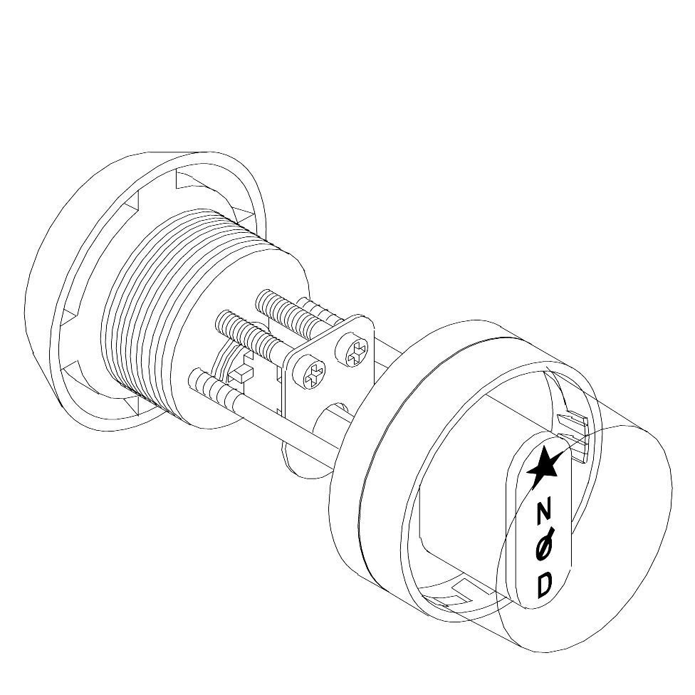 Rund sylinder med nødutstyr SK7652. Benyttes i rømningsdører med knapp innvendig og sikkerhetssylinder utvendig.