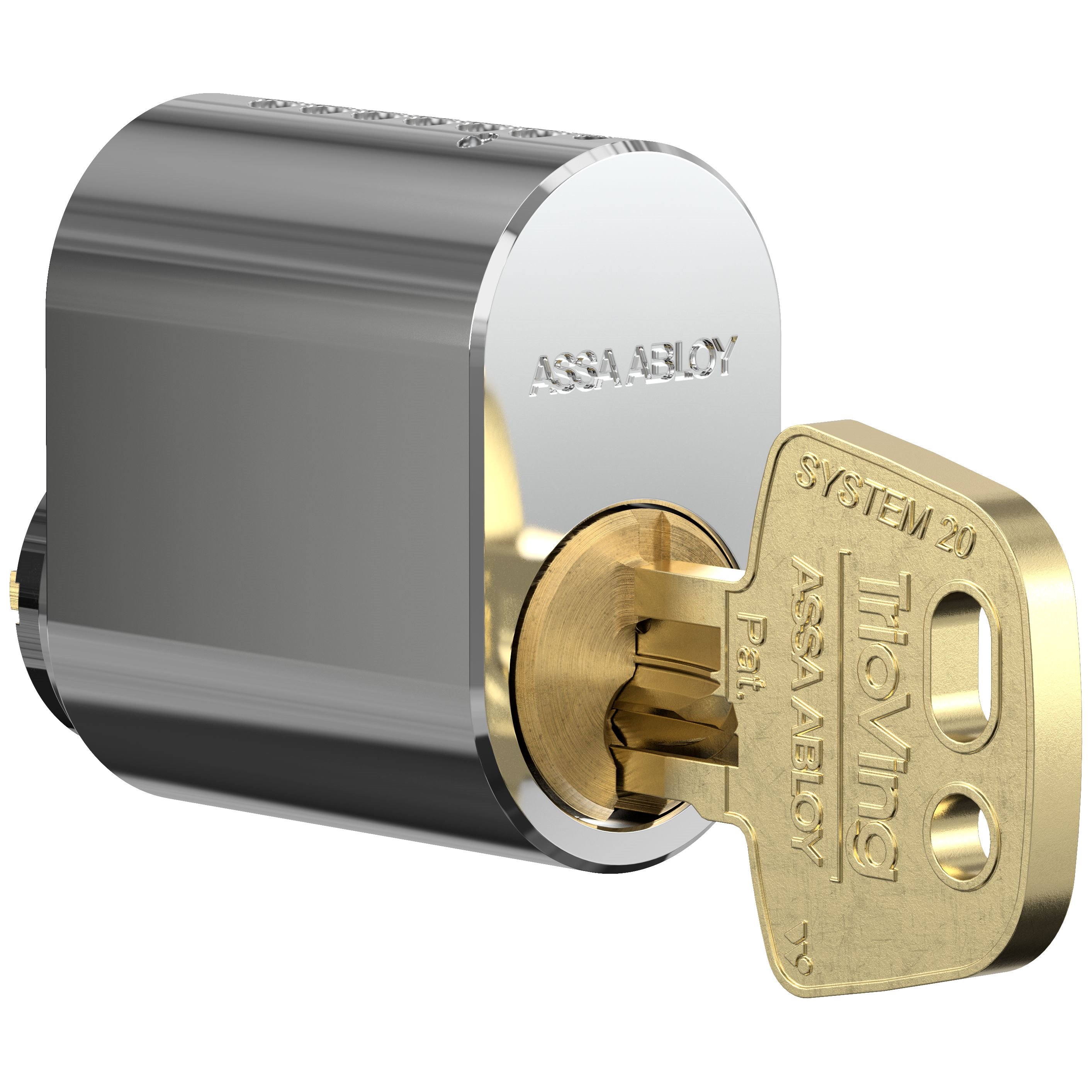 Oval sylindere med bakkantfeste. Brukes til ASSA ABLOY modullås-, Connect og 51-serien. Kan også benyttes i andre låskasser fra ASSA, ABLOY, Boda og Ruko.For høyeres sikkerhet anbefales System 20+ f.eks. i byggets ytre skall, og på dører hvor det kreves ekstra sikkerhet. Disse kan også inngå i FG-godkjent låsenhet.