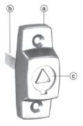Rundt trekantknappen ligger en fjærbelastet skive som må trykkes inn til en presis posisjon for å få vridd knappen.