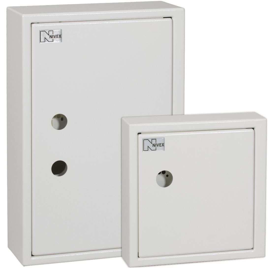 Finnes i to størrelser. N30 har 30 nøkkelkroker, N100 har 100 kroker. N100 skapet kan i tillegg bestykkes med en utbyggingsplate med plass til ytterligere 100 nøkkelknipper - Altså totalt 200 kroker.