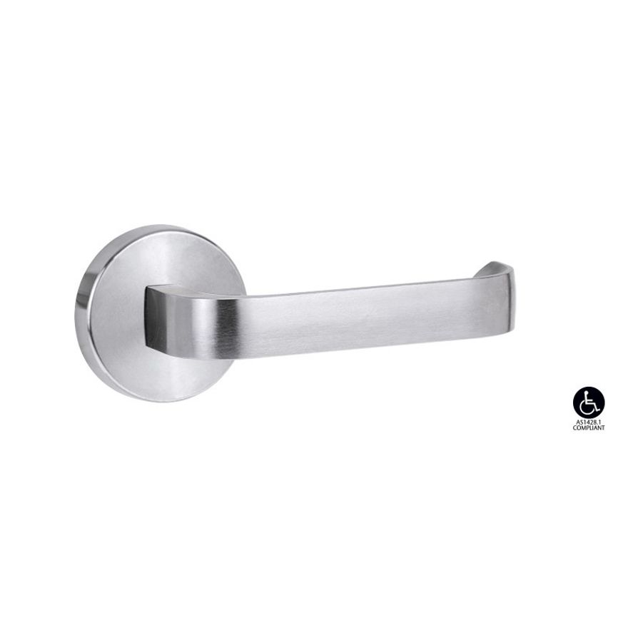 Brass door furniture provides durable performance in high corrosion applications. Unlike other commonly used materials it contains no iron so it will not rust or tea stain in high corrosion environments. Lockwood Brass Door Furniture in satin chrome brushed finish (SC) has been successfully tested under NATA conditions to maintain both function and finish under prolonged neutral salt spray test for over 1000 hours satisfying the highest ranking (C10) of the appropriate Australian Standard (AS4145.2: 2008). This result confirms that Lockwood Brass Door Furniture the ideal choice for use in coastal applications and other corrosive environments.