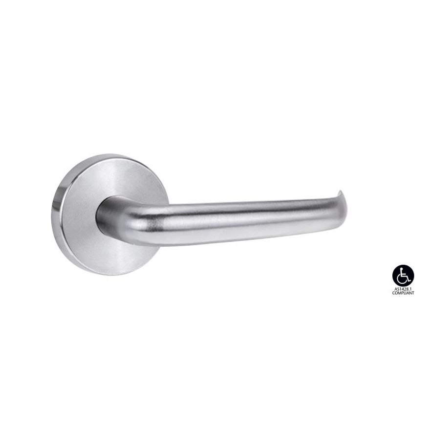 Brass door furniture provides durable performance in high corrosion applications. Unlike other commonly used materials it contains no iron so it will not rust or tea stain in high corrosion environments. Lockwood Brass Door Furniture in satin chrome brushed finish (SC) has been successfully tested under NATA conditions to maintain both function and finish under prolonged neutral salt spray test for over 1000 hours satisfying the highest ranking (C10) of the appropriate Australian Standard (AS4145.2: 2008). This result confirms that Lockwood Brass Door Furniture the ideal choice for use in coastal applications and other corrosive environments.