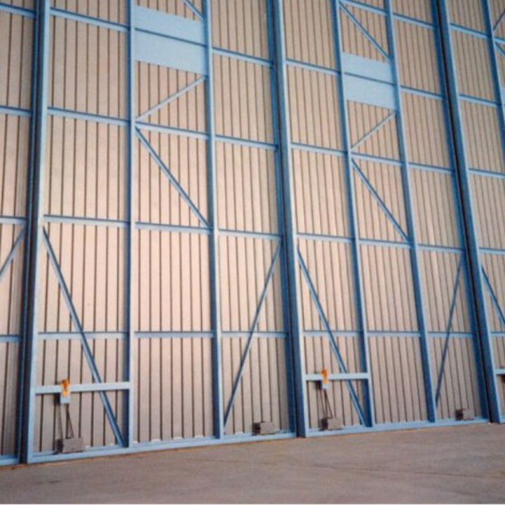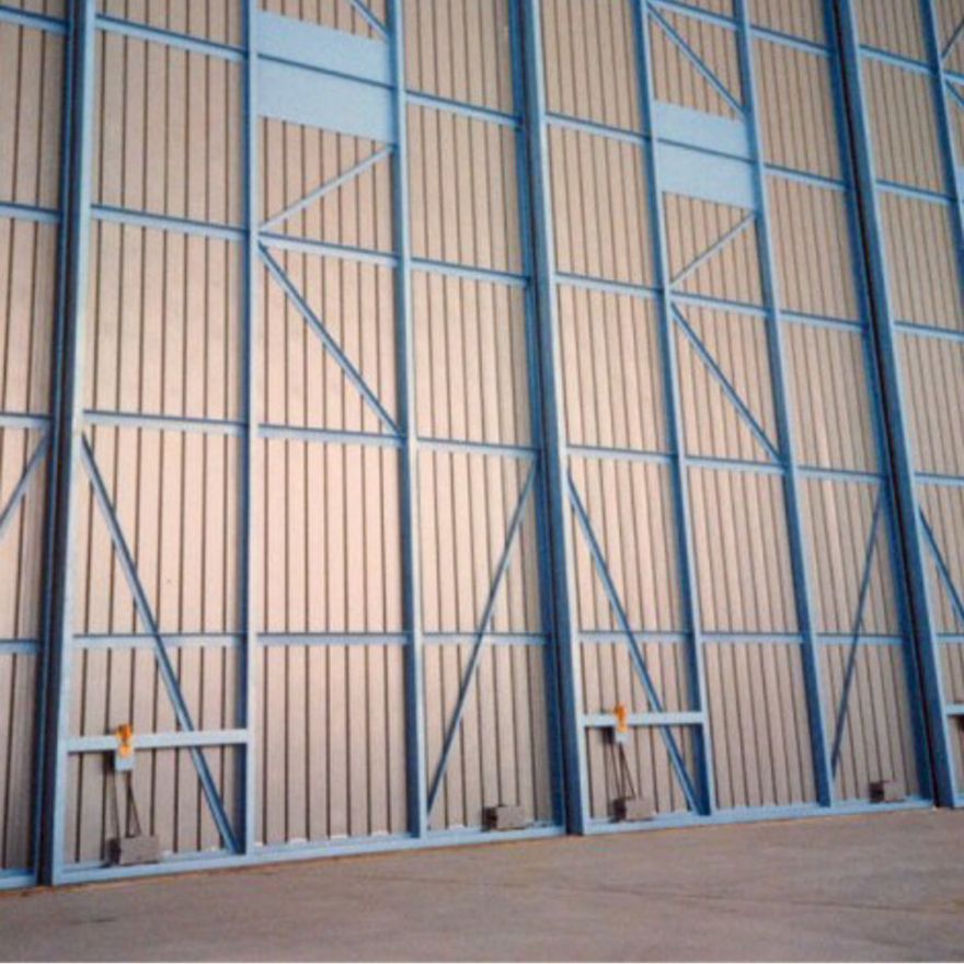 The Sterling range of bottom rolling systems is ideal for heavy commercial and industrial applications such as warehouses, agricultural buildings and aircraft hangars. The product is particularly suitable where the supporting structure or lintel is insufficient for the weight of the door or headroom is limited. Five systems are available in total, catering for wooden doors weighing up to a maximum of 2000kg and metal doors up to a maximum weight of 8000kg. The product is suitable for single or multiple lines of track and the top guide channel may be soffit fixed or face fixed. If this product is to be installed in areas exposed to extreme heat - we recommend a maximum temperature of 70°C.
