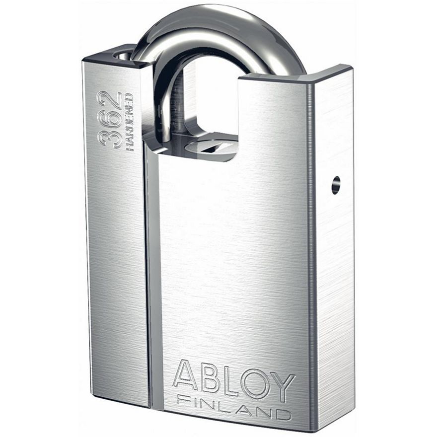 ABLOY padlocks provide maximum resistance against physical attack. The hardened, free-spinning protection plate prevents drill bits from penetrating the lock. Further security is provided by the hardened stainless ball bearings locking the shackle at both ends. The highest security can be provided by non-rekeyable construction.