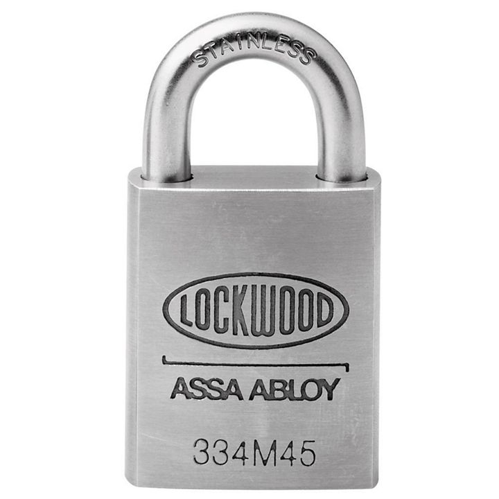 The Lockwood High Security 334 Series Stainless Steel Case Padlock features stainless steel shackles designed for high security and high corrosion marine applications.