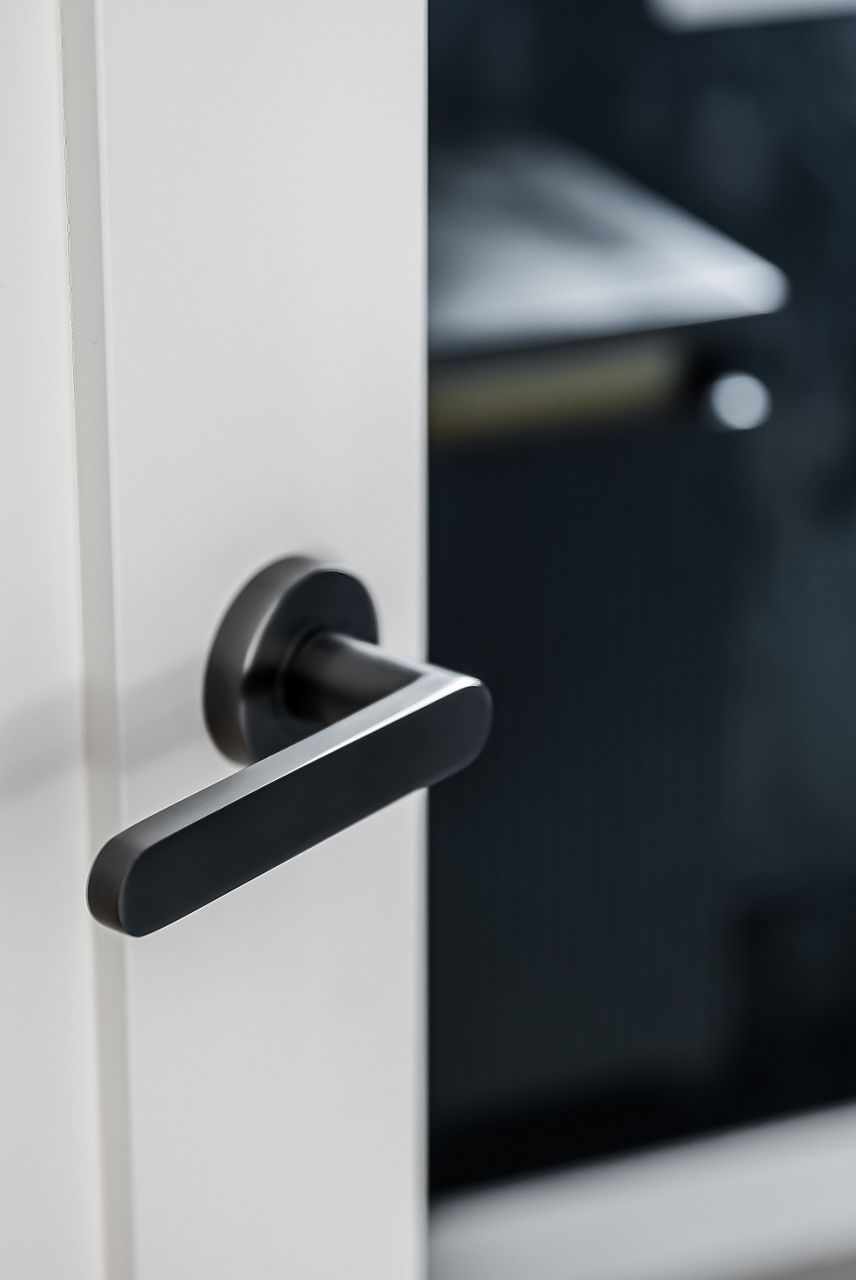 The Lockwood Vivid range was selected for internal spaces, thanks to its clean lines, versatile finishes, and premium feel. PVD Satin Brass and Gunmetal finishes provided the designer with environmentally friendly, hardwearing options that enhanced the home’s modern look while offering longevity. Features like Lockwood’s minimal privacy pin added subtle but functional touches that contribute to a sleek and seamless interior.
