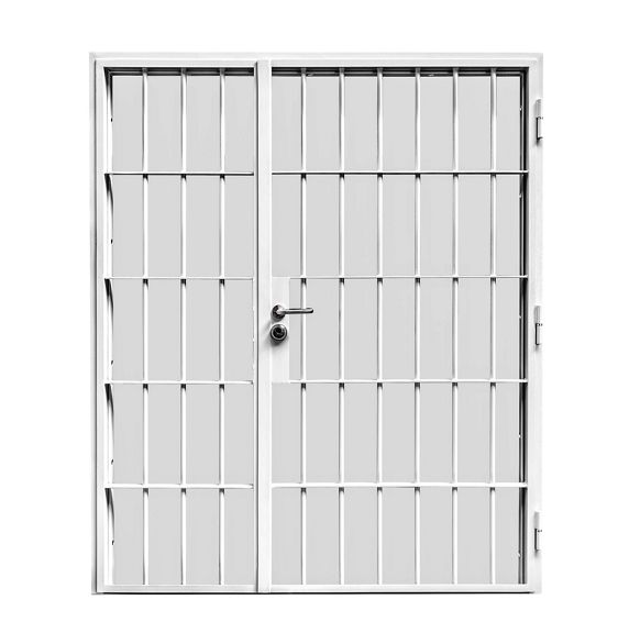 The KST fixed grids are made of steel bars ø20 with a maximum bar spacing of 120 mm and steel flat bars 6x45 with a maximum spacing of 400 mm, in a frame made of L- profile, C-profile or closed profile. The openable grid type KSR and KSRK is suspended on two or three steel, welded hinges with ball bearings. The frame is made of a steel sheet 2 mm thick. The grid can also be made on a shared frame with a door leaf. The KSR grid can be equipped with multipoint lock or single-point lock. The KSRK grid is equipped with certified fixation for padlock. The openable grids can be equipped with an electric strike, position contact, door closer and other equipment.