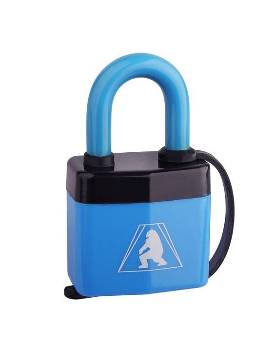 Self-latching lamella padlock with plastic body The characteristic feature of this padlock is a lamella structure of the body and the plastic coating provided also on the shackle. The lamella structure makes the padlock more resistant to physical damage, and the use of plastic reduces the number of abrasions and scratches on the surfaces in direct contact with the body and shackle of the padlock when closed.