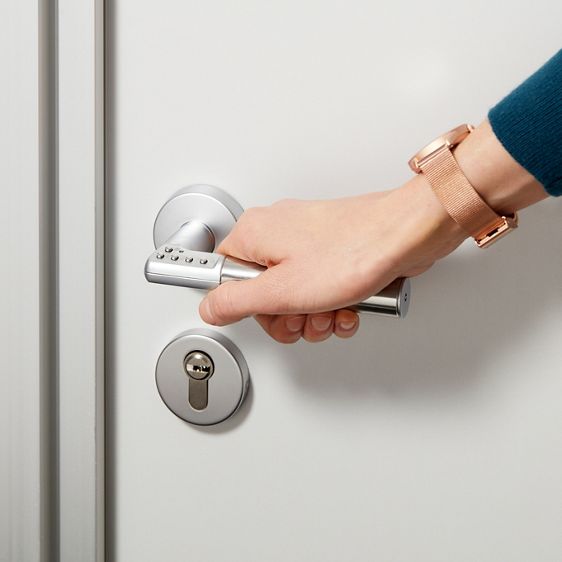 Dzięki klamce na kod Code Handle użytkownicy mogą szybko i bezpiecznie uzyskać dostęp do pomieszczeń bez konieczności noszenia kluczy. Wystarczy wprowadzić kod na klawiaturze klamki, aby odblokować drzwi. Produkt współpracuje z większością standardowych wkładek i zamków, dzięki czemu nie wymaga ingerencji w istniejący system drzwiowy ani prowadzenia przewodów czy montażu centralnego systemu kontroli dostępu.