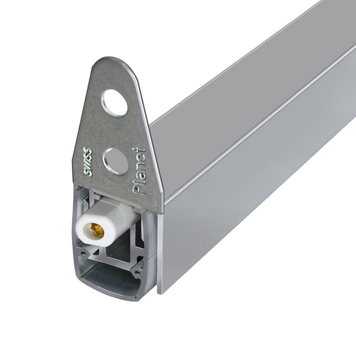 Automatyczna uszczelka opadająca Planet MF FH+RD | 50 dB, do drzwi dźwiękoszczelnych, dymoszczelnych i przeciwpożarowych, wyzwalanie po stronie zawiasów z automatyczną kompensacją nachylenia podłogi, równoległe opuszczanie, wysokość uszczelki do 16 mm. Zlicowane lub głębszy montaż z zabezpieczeniem uszelki we frezowaniu. Samogasnąca uszelka silikonowa, mocowanie boczne. Profil aluminiowy 19,8 x 20 mm.