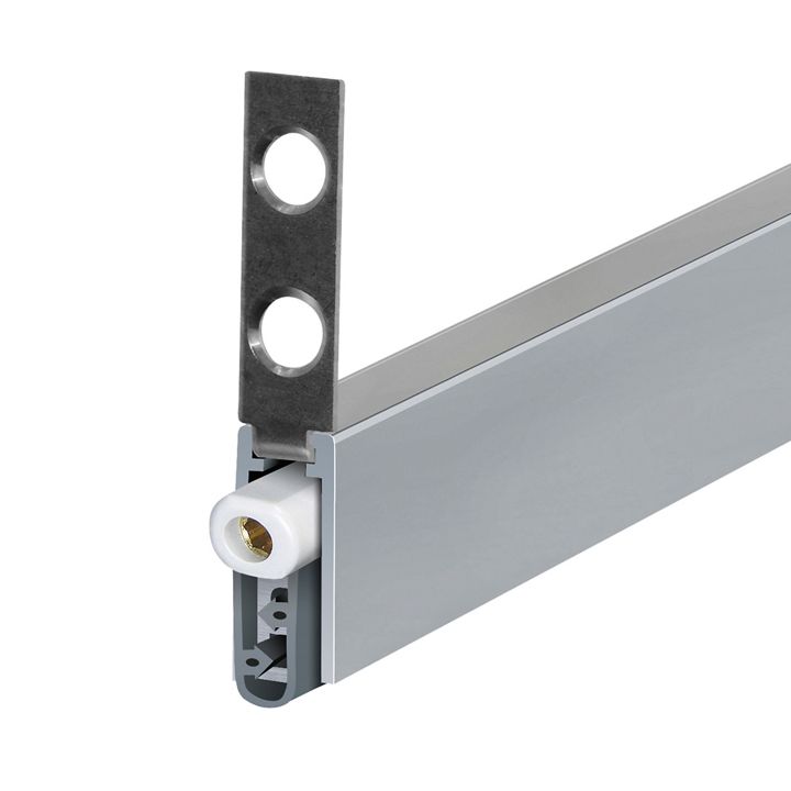 Automatyczna uszczelka opadająca Planet TW | FH+RD | 49 dB, do drzwi dźwiękoszczelnych, dymoszczelnych i przeciwpożarowych, wyzwalanie po stronie zawiasów z automatyczną kompensacją nachylenia podłogi, równoległe opuszczanie, wysokość opadania uszczelki do 12 mm. Mocowanie boczne. uszczelka z samogasnącego silikonu, profil aluminiowy 8 x 20 mm