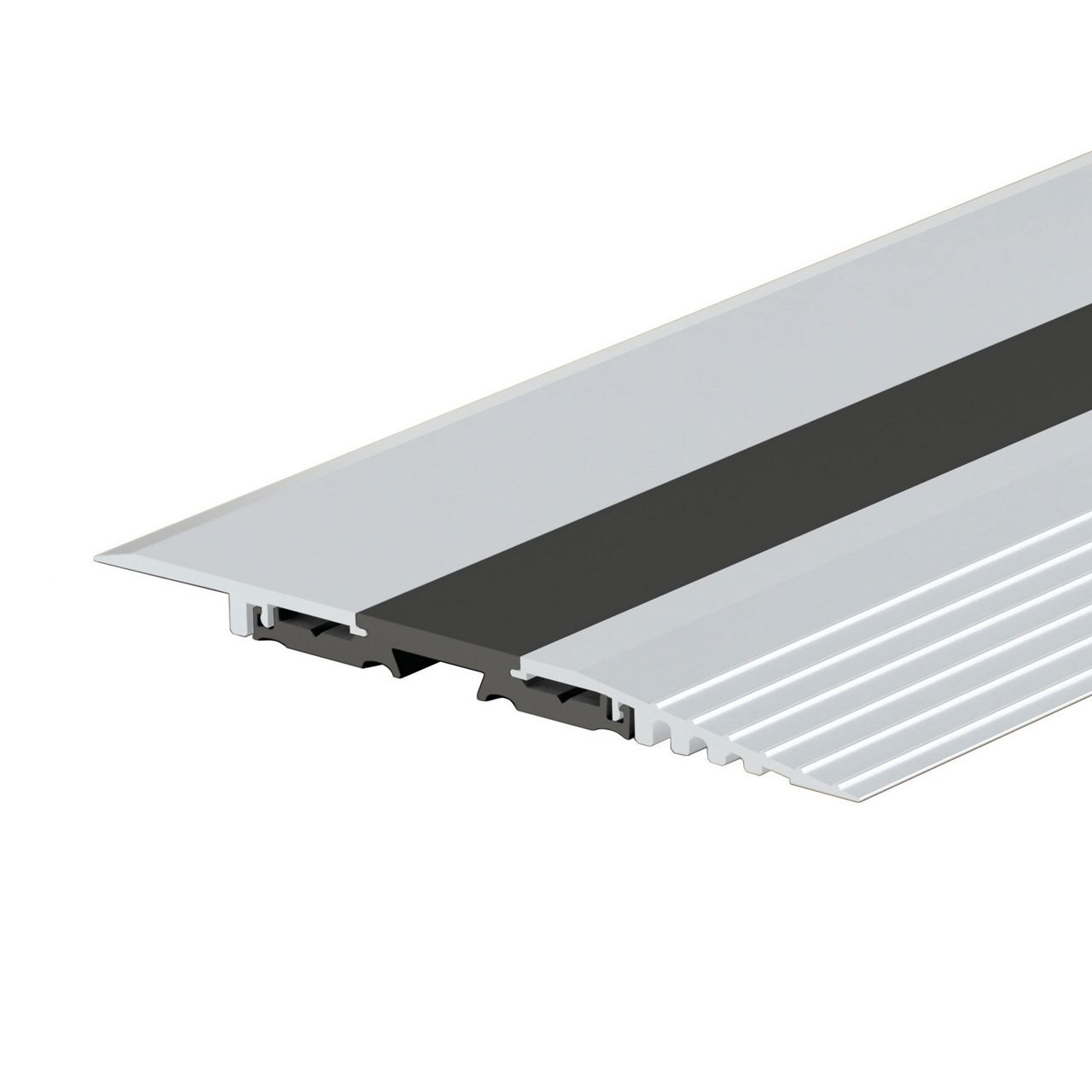 Oddzielony termicznie, modułowy próg zatrzaskowy Planet F130, odpowiedni do przejść bez barier. Optymalny łącznik między wnętrzem a zewnętrzem, z niewidocznym połączeniem śrubowym, odpowiedni do sytuacji budowlanych ze stopniowanymi poziomami. Bezbarwna anodyzacja EV1 (aluminium). Profile aluminiowe mogą być później wymieniane, zoptymalizowane do użytku z uszczelkami opuszczanymi.